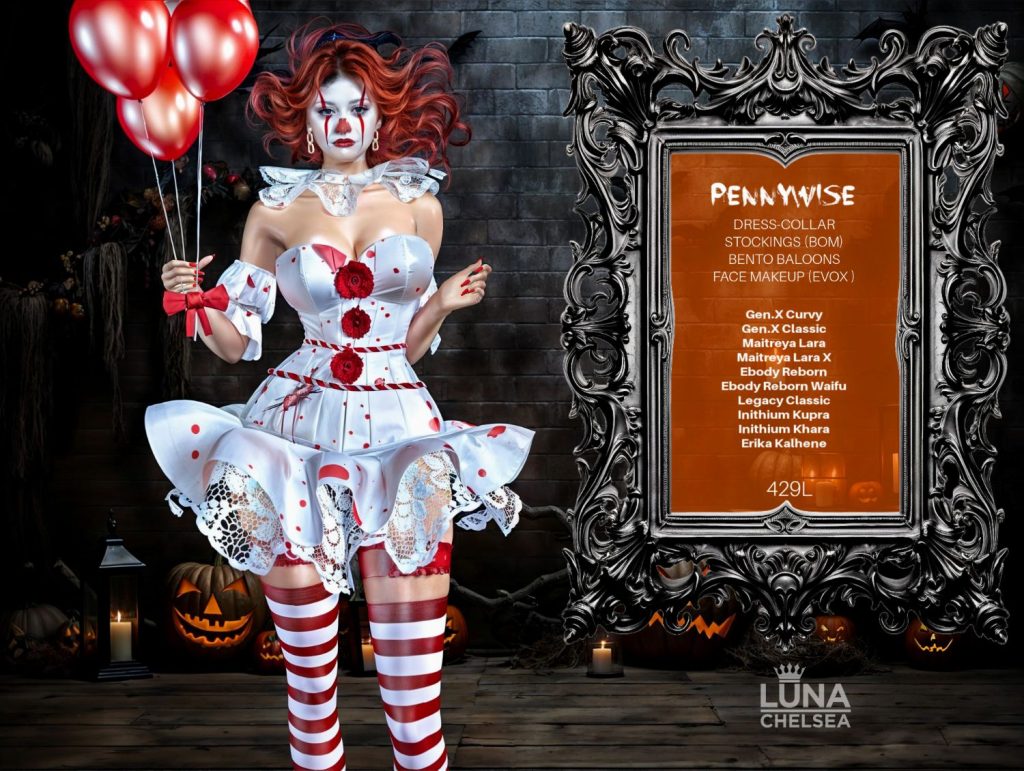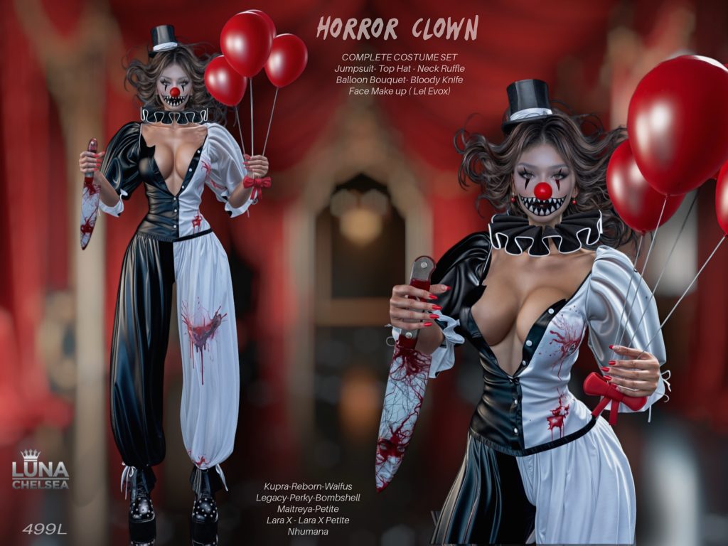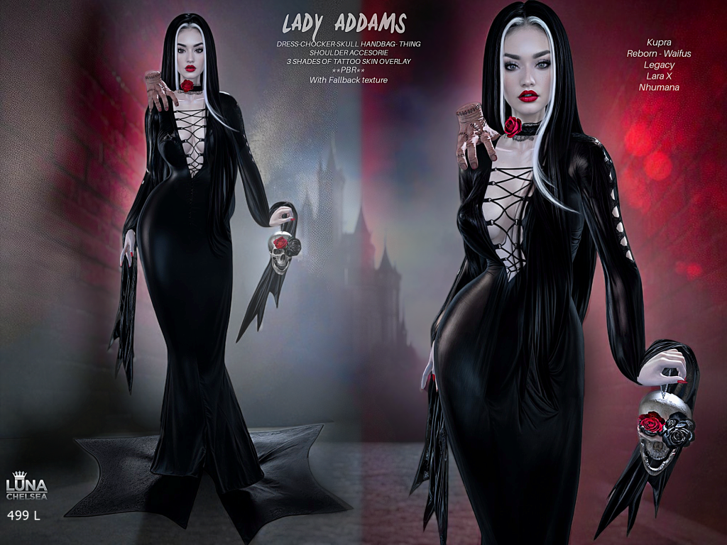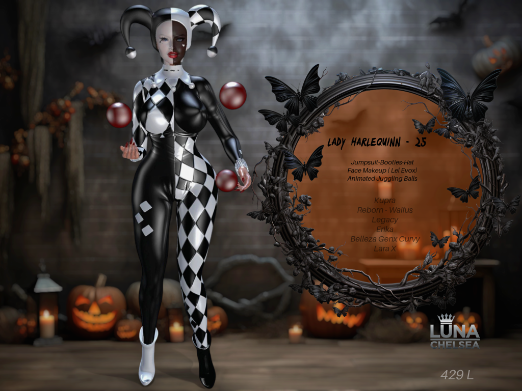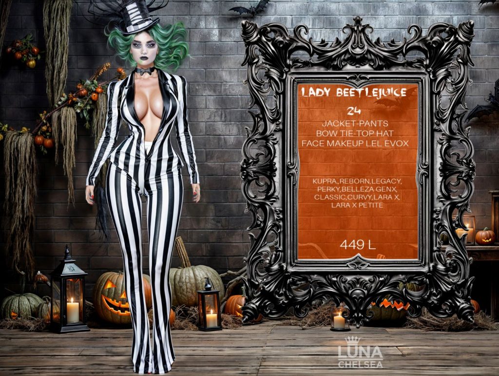 Second Life is full of creative designers and a lot of options for just about any Halloween themed costume you can think of. One designer that is on the top of every shoppers list, has a massive selection of ready to hit the parties and haunts in style this year is non other than LUNA CHELSEA.