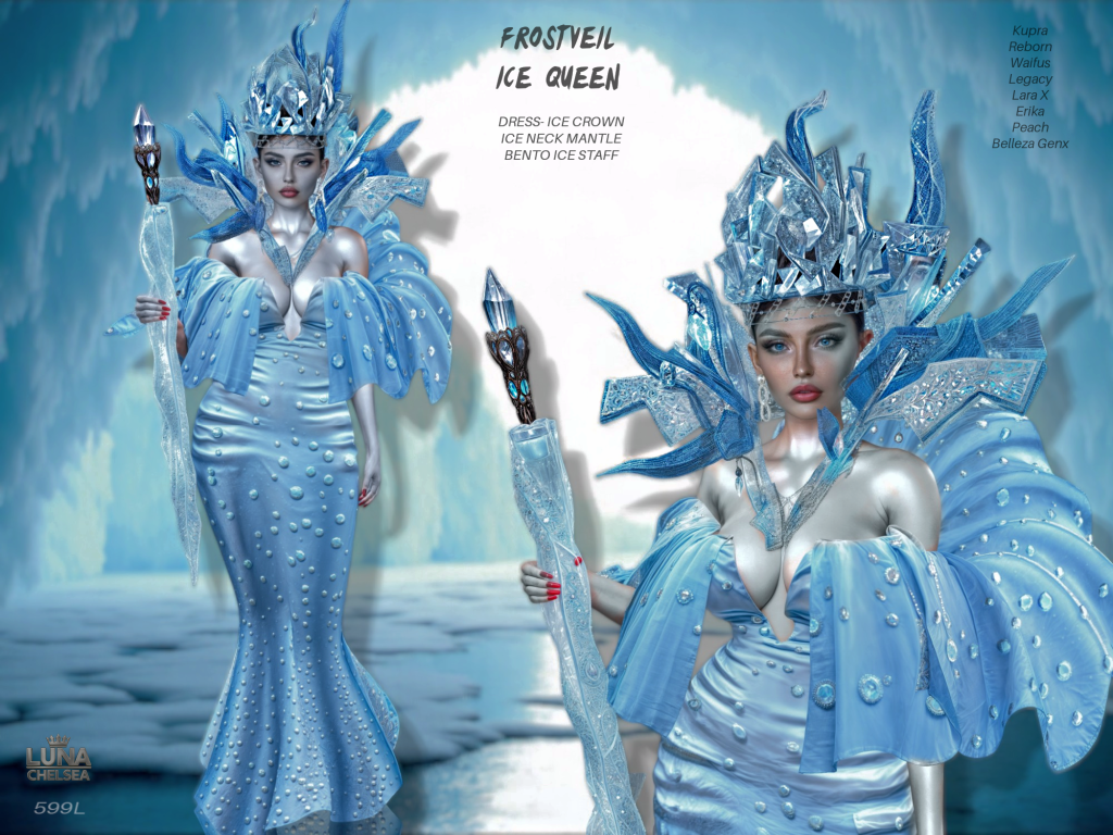 The challenge came from layering animated textures with transparency and glow while keeping the outfit wearable and optimized for SL. I wanted her to shimmer like frost under moonlight, and getting that balance between fantasy and functionality took a lot of trial and error. Rigging her with movement while preserving the elegance of the silhouette nearly drove me mad—but I’m stubborn, and I don’t give up easily.