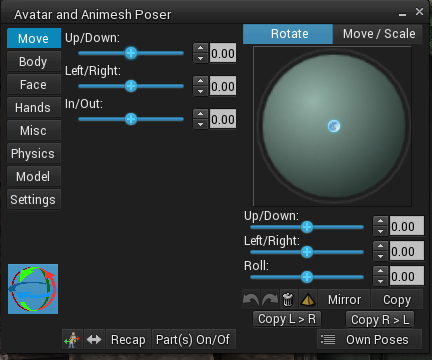 Originally developed for the Black Dragon viewer, Poser was known for its precision and flexibility. Firestorm adapted and refined the tool, making it more accessible and intuitive for a broader user base. The interface is clean and user-friendly, with sliders and visual feedback that make posing feel more like sculpting than scripting.