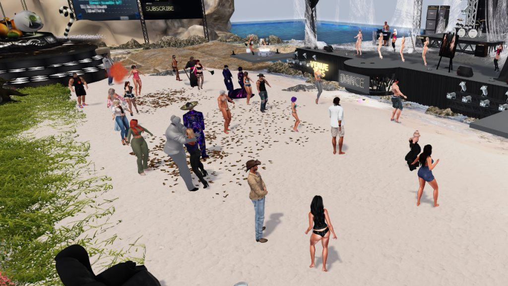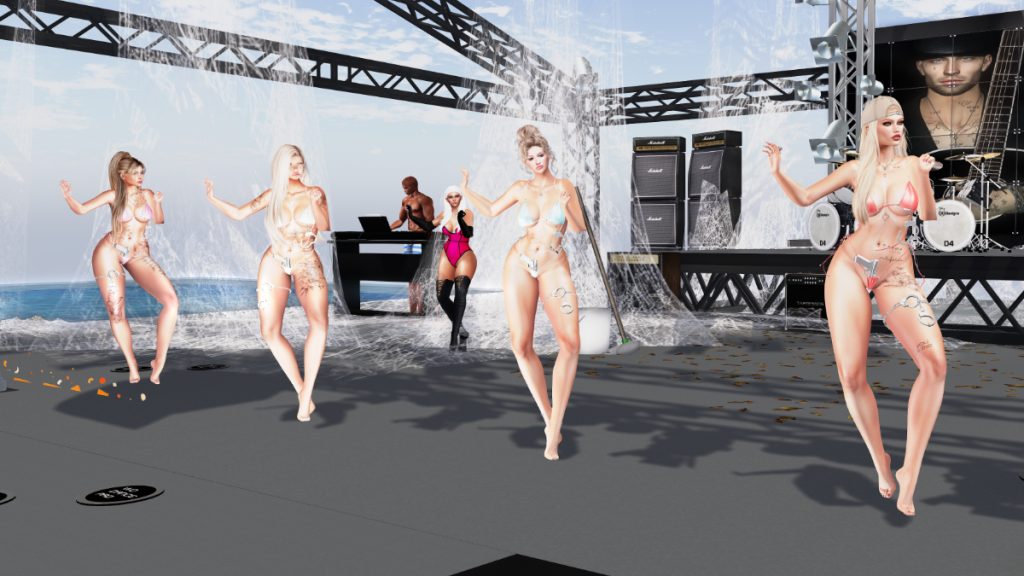 Adding to the charm were her “Back-Up Bitches”— (ღڰۣ: KaRa ღڰۣ:, Lexie Taurog & ღ Karma Jღy Warziders ღ) a playful group of dancers in skimpy beachwear who moved in sync with every beat, adding humor and visual flair to the set. The combination of Shaye’s strong vocals, lively energy, and cheeky visuals made for a perfectly balanced Second Life performance—part concert, part beach party.