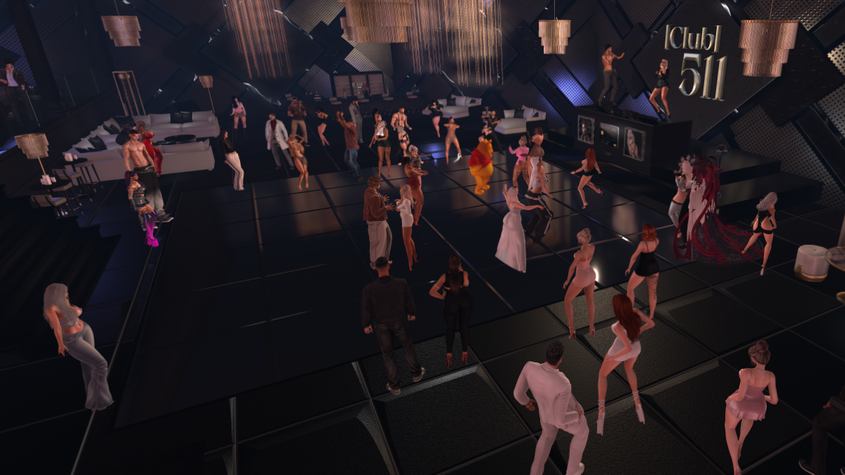 Venues like Club 511, TRYST, Golden Hour, Peak, Warehouse 21 and others routinely pull large crowds for every event. Social media feeds light up with promotions, countdowns, and pleas for avatars to come spend their online time there. The energy is constant, the visuals are bold, and the sense of movement — even if artificial — is undeniable.