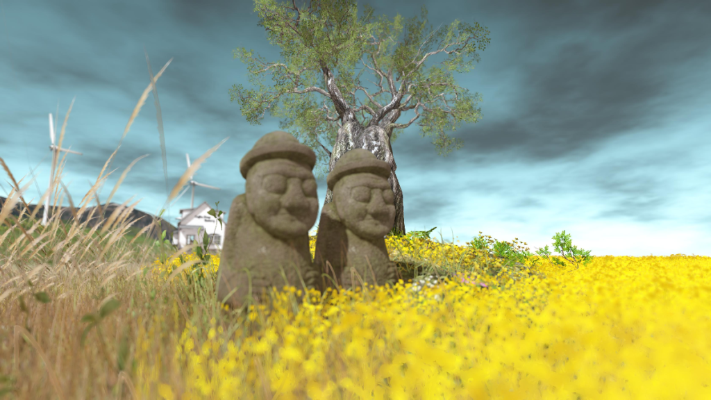 In the quiet heart of Korea City, there’s a place where the digital and the divine blur—a single, time-worn tree standing between golden wildflower fields and the low hum of distant turbines.